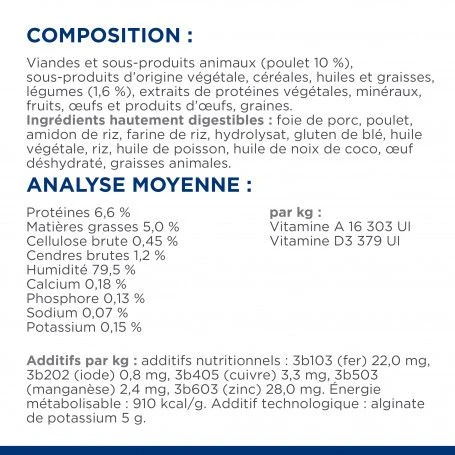 Les nutritionnistes et les vu00e9tu00e9rinaires de Hill’s ont du00e9veloppu00e9 la nutrition de Hill’s Prescription Diet ON-Care pour aider spu00e9cifiquement u00e0 nourrir et u00e0 soutenir les chiens qui luttent contre une maladie grave. Cette du00e9licieuse alimentation humide est composu00e9e de poulet, de graisses savoureuses et de protu00e9ines hautement digestibles , pour offrir u00e0 votre chien une excellente expu00e9rience alimentaire.