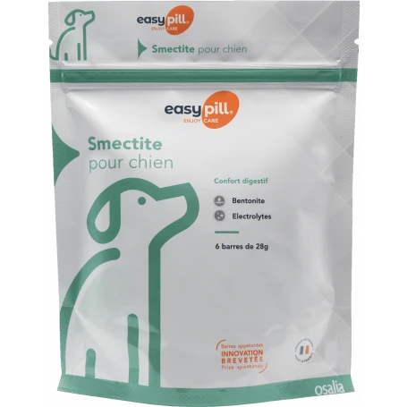 Osalia Easypillu00ae Smectite Chien est un complu00e9ment alimentaire anti-diarrhu00e9e u00e0 base d’argile verte pour chien.