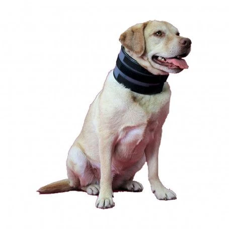 Principe de la minerve qui maintient le couu00a0et u00e9vite ainsi u00e0 l’animal d’approcher certaines parties du corps.