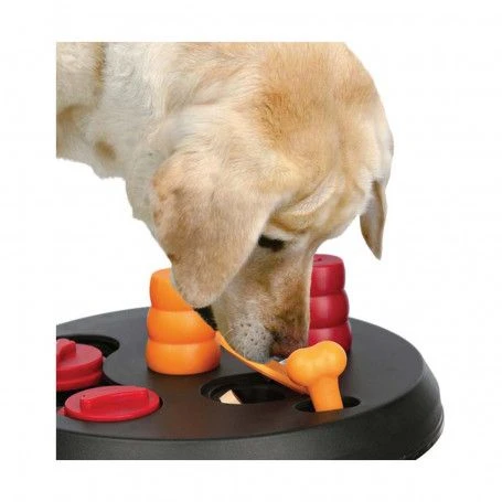 Dog Activity Flip Board est un jeu de stratu00e9gie intu00e9ractif dans lequel le chien obtient sa ru00e9compense en utilisant diffu00e9rentes techniques pour ouvrir des fentes.