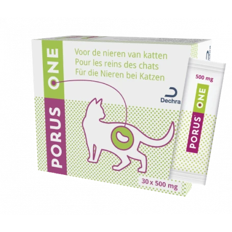 Porus One est un produit pour les reins du chat. Porus One intercepte les pru00e9curseurs des toxines uru00e9miques (= toxines ru00e9nales) au site de leur production dans l’intestin et les u00e9limine avec les excru00e9ments. Ce faisant, toutes les billes de Porus One sont complu00e8tement u00e9liminu00e9es. Porus One n’est pas mu00e9tabolisu00e9 et, par consu00e9quent, il ne sollicite pas le mu00e9tabolisme du chat.
