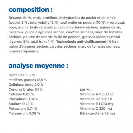 Les croquettes pour chien Hill’s Vet Essentials Multi-Benefit + Senior Health au Poulet pour les chiens de moyennes et grandes races u00e2gu00e9s de 7 ans et plus sont notre formule la plus avancu00e9e pour les animaux u00e2gu00e9s, et sont disponibles exclusivement en clinique vu00e9tu00e9rinaire. Cette nutrition multi-bu00e9nu00e9fices complu00e8te est conu00e7ue pour soutenir leur cerveau et leur corps vieillissants, tout en amu00e9liorant leur qualitu00e9 de vie.