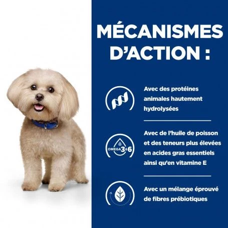 - Les protu00e9ines d’origine animale qui entrent dans la composition de ces croquettes sont soumises u00e0 une hydrolyse poussu00e9e pour minimiser le risque de du00e9tection par le systu00e8me immunitaire.